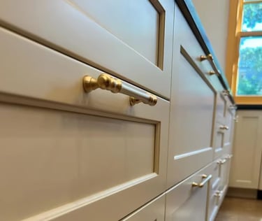 Cabinet doors and drawers are finished in our controlled spray shop.