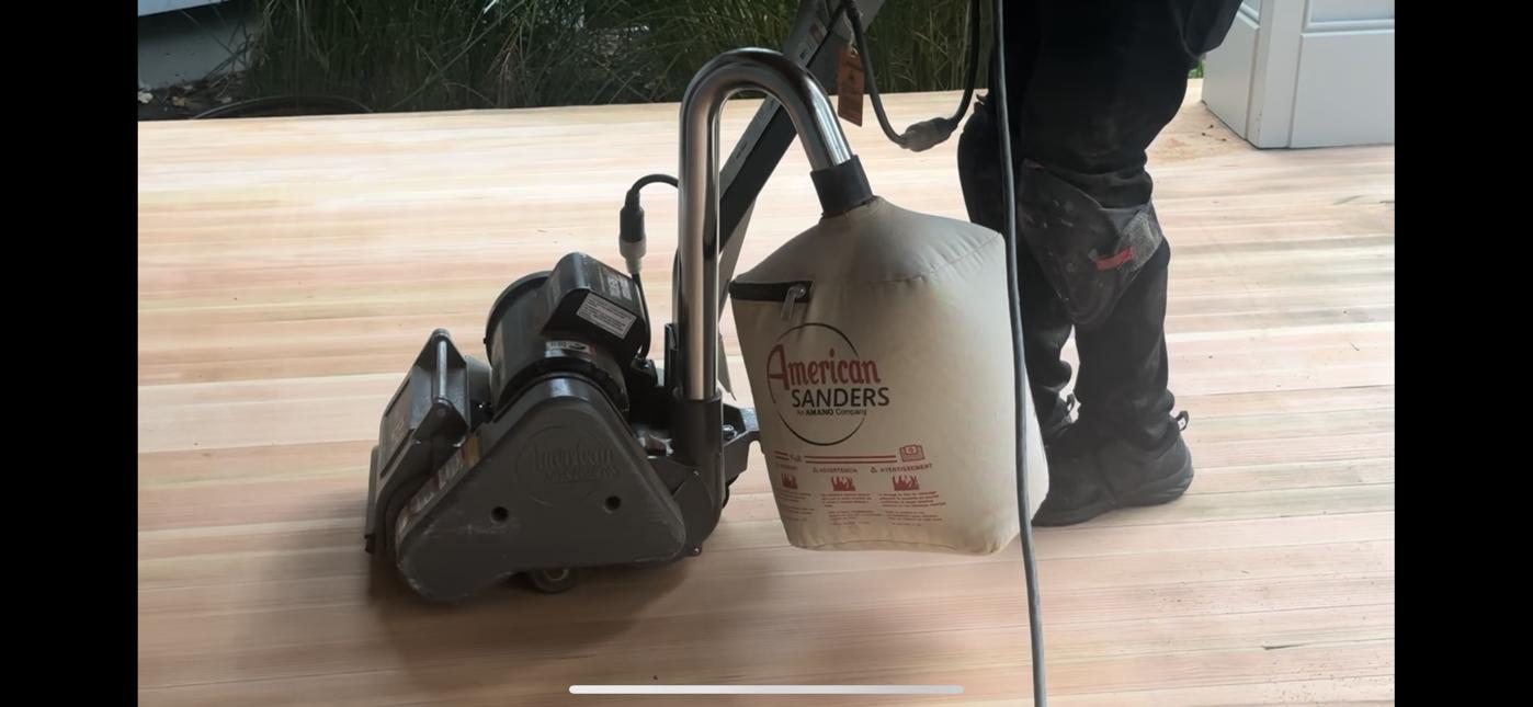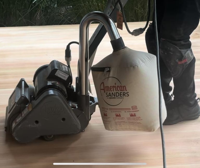We secure any loose boards and sand the entire deck to smooth the surface for even staining.