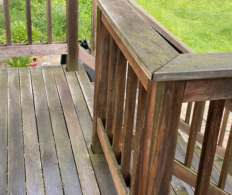 Our initial step involves using plant and soil-safe products for deck washing, ensuring your garden remains unharmed.